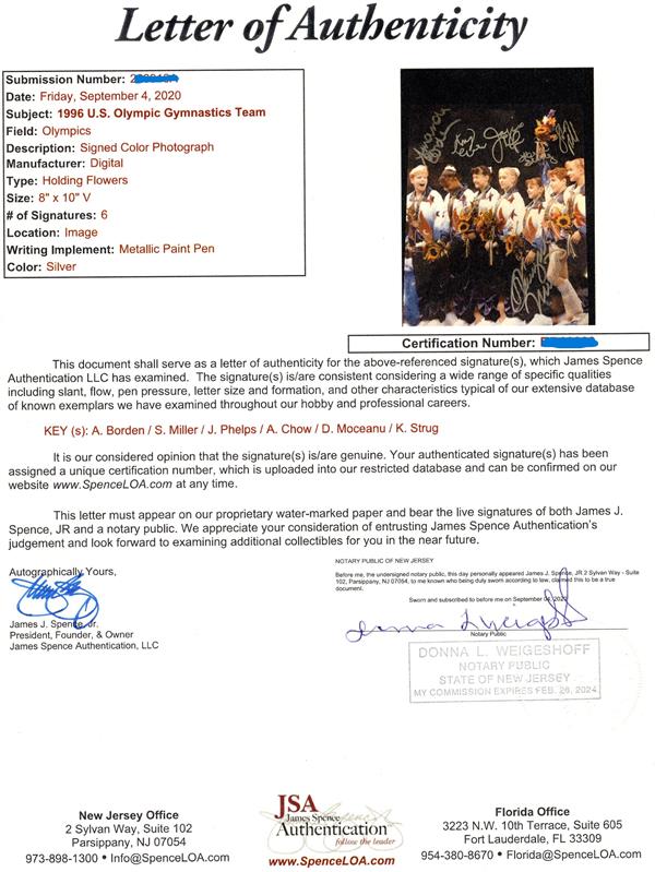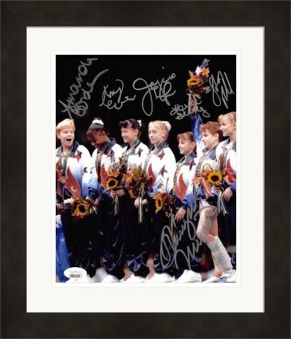 1996 US Women's Gymnastics autographed 8x10 Photo, Amy Chow, Dominique Dawes, Shannon Miller, Jaycie Phelps, Dominique Moceanu, & Kerri Strug Framed