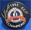 Jim Roberts signed hockey puck (Montreal Canadiens) 100 Years of Stanley Cups Edition inscribed 5xSC