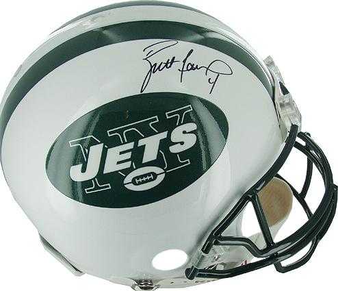 Brett Favre autographed Football Helmet (New York Jets) **This item comes with a Certificate of Authenticity along with matching tamper-proof holograms from Autograph Warehouse, guaranteeing the authenticity of this hand-signed autograph. Autograph Warehouse stakes its reputation on every item it sells, and authenticity is their number one priority. Each and every autograph is guaranteed for life to be authentic.**