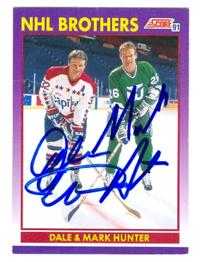 Dale Hunter & Mark Hunter autographed Hockey Card (NHL Brothers 1991 Score #306 Whalers & Capitals)