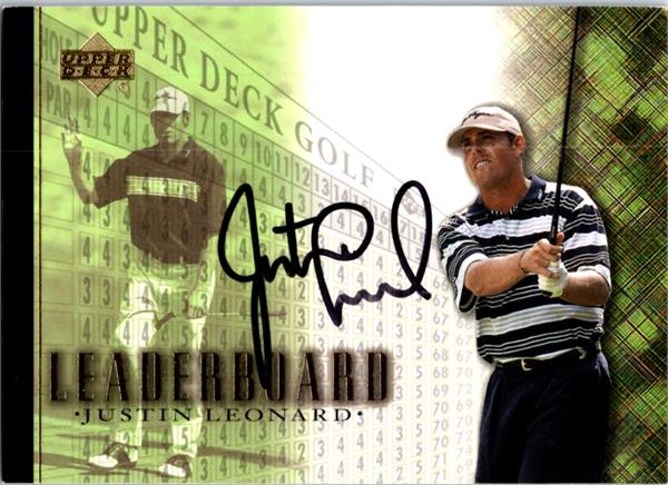 Home > AUTOGRAPHED CARDS > Justin Leonard autographed Golf card (PGA Tour, Texas Longhorns, SC) 2001 Upper Deck Leaderboard #94