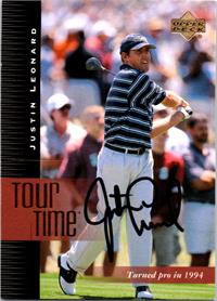 Home > AUTOGRAPHED CARDS > Justin Leonard autographed Golf card (PGA Tour, Texas Longhorns, SC) 2001 Upper Deck Tour Time #186
