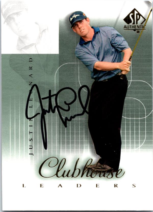 Justin Leonard autographed Golf card (PGA Tour, Texas Longhorns, SC) 2002 Upper Deck Clubhouse #62