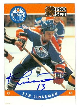 Ken Linseman autographed hockey card (Edmonton Oilers The Rat) 1990 Pro Set #444